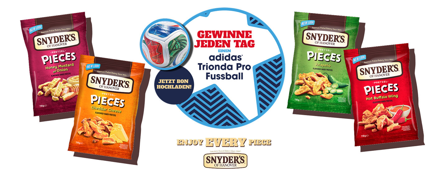Jetzt Kassenbon hochladen und täglich einen adidas* Trionda Pro Fußball oder ein Snyder’s Produktpaket gewinnen – passend zum großen Fußball-Sommer!